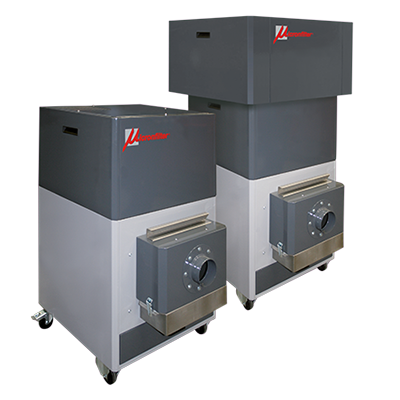 SHARP filtering unit has been developed according to acoustic pollution laws, in order to grant a very low noise level (less than 70 dB). SHARP is supplied complete with a manual filter shaking device, in order to maintain high efficiency levels of the filters. A special device stops any possible spark to get into the filter unit.